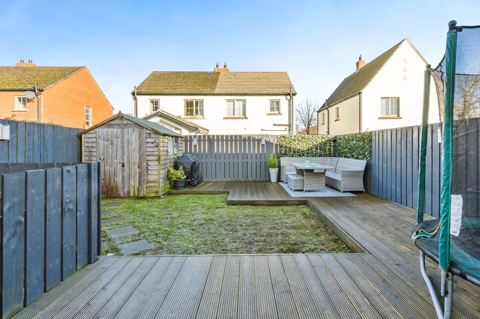 Front Garden - Tarmac driveway, car parking space, garden in lawns, boundary hedge.Rear Garden - Enclosed rear garden in lawns, raised timber decking, outside tap and light, garden shed.