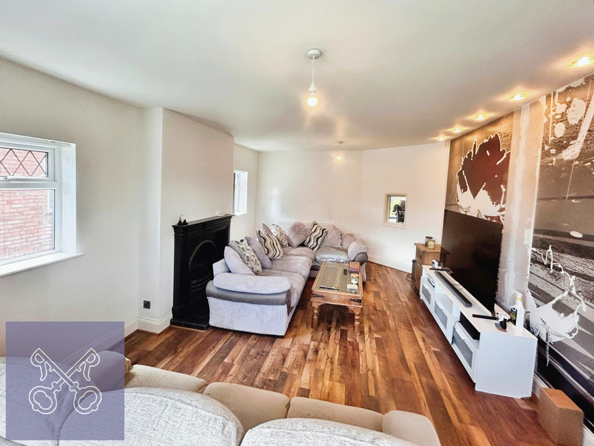 The sitting room is a fabulous space that is bathed in natural light from a large double-glazed walk-in bay window at the front and additional side windows. This room’s centrepiece is a feature fireplace, complete with a cast iron-style inset and a tiled hearth, creating a warm and inviting focal point. The decorative surround adds a touch of classic charm. With laminate flooring and dual radiators, this room is both stylish and comfortable, perfect for relaxing or entertaining.