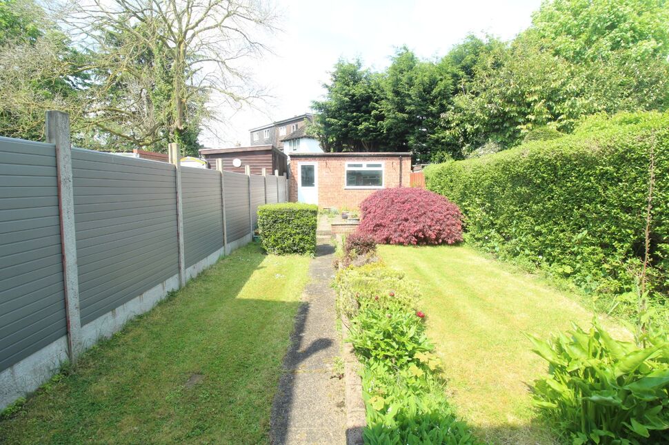 Having a patio area to the forefront of the garden and then being mainly set to lawn with flower bed borders. There is a path that leads to the rear of the garden where there is brick built shed.