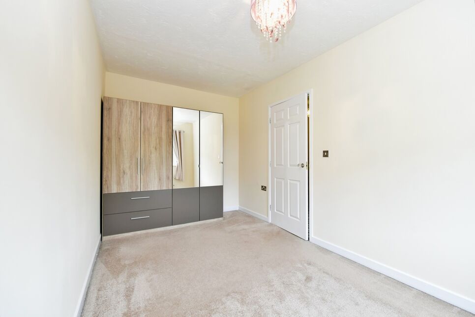 A further spacious double bedroom, equally decorated with new carpet and redecorated walls. A large mirrored wardrobe is also included. Overlooks the rear garden below.