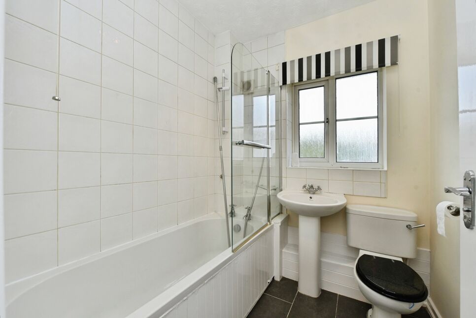 A good sized bathroom, part tiled and neutrally decorated. Shower over bath, toilet and basin. Pipework conveniently boxed in for further appeal.