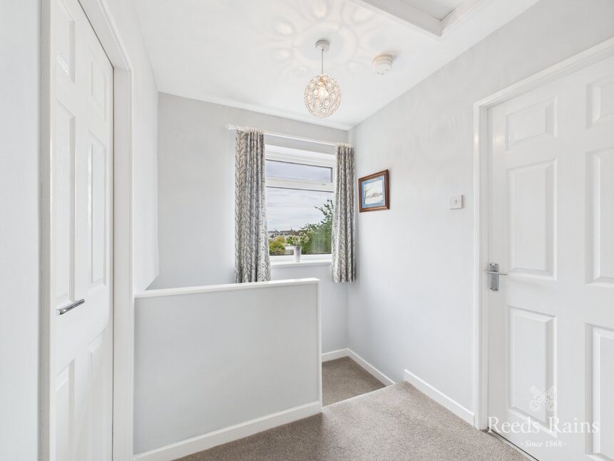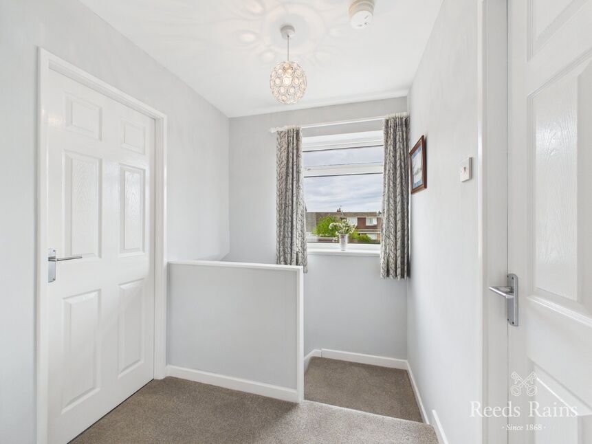 The central landing is flooded with natural light from a side-facing window and provides access to the three bedrooms and family bathroom. Neutral décor and doors lead off to each of the three bedrooms and bathroom.