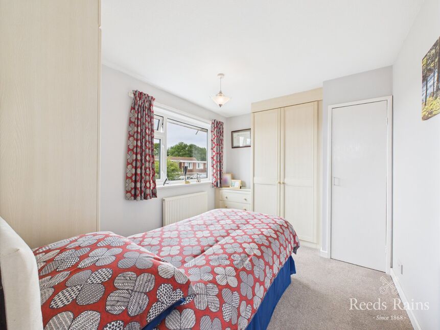 The second bedroom overlooks the rear garden and benefits from an excellent range of fitted wardrobes and drawers along two walls, as well as a built-in cupboard. Radiator.