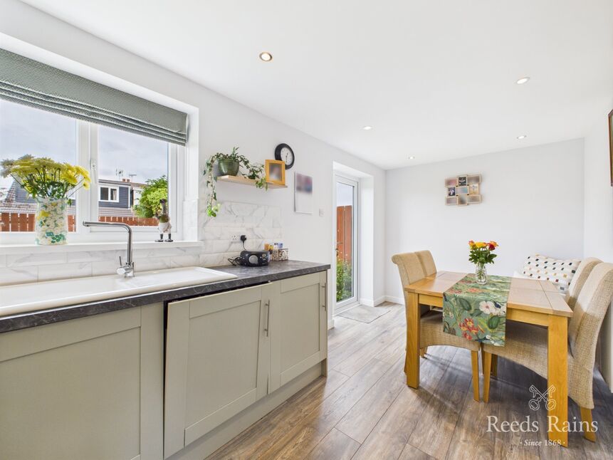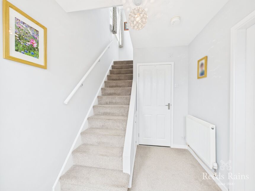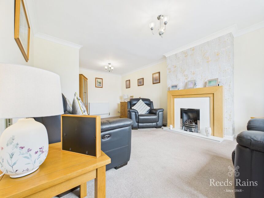 On arrival, a COMPOSITE ENTRANCE DOOR opens to a welcoming entrance hall that sets the tone for the high standard throughout. A smartly fitted CLOAKROOM with a CONTEMPORARY TWO-PIECE SUITE adds practical convenience, while the main SITTING ROOM offers a calm, comfortable space complete with a FEATURE FIREPLACE and a large window drawing in natural light.