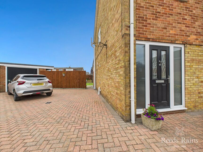 A block paved driveway extends along the side of the property, offering off-street parking for several vehicles. Gated access leads through to the rear garden, enhancing security and convenience.