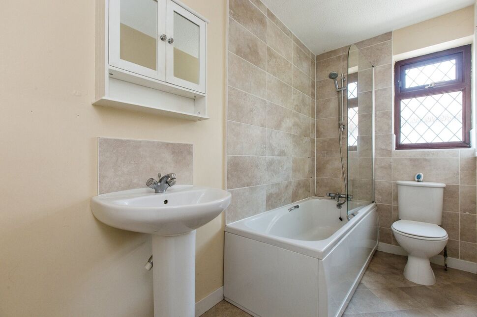 Brand new three piece white bathroom suite comprising of panelled bath with shower over, wash hand basin and low flush W.C. Part tiled wall elevation, Lino flooring, Double glazed obscure window.