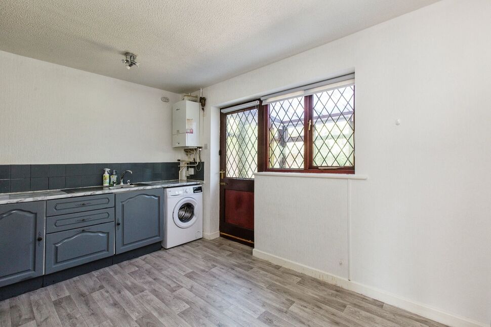 Fitted kitchen with a selection of wall and base units with complementing work surfaces, Free standing electric cooker, Plumbed for a washing machine, Space for a fridge/freezer, Single sink unit with drainer. Space for a dining table and chairs.