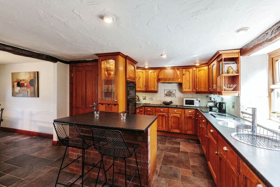 The country-style kitchen is warm and inviting, complete with all the essentials. It offers plenty of space for preparing family meals or hosting dinner parties. The kitchen leads directly to the utility room with W.C. beyond.
