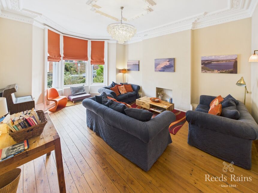 A large room having a bay window to the front elevation. Wood flooring and two radiators.