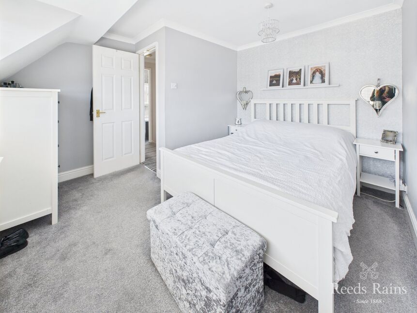 As you enter, you are greeted by a welcoming extended porch with built-in storage for shoes and coats, leading to a central hallway that seamlessly connects the ground floor. At the heart of the home is the modern open plan kitchen/diner, complete with high gloss units, integrated appliances, a breakfast bar, and a sun room that overlooks the back garden. The living room and versatile playroom offer additional living spaces, perfect for entertaining or relaxing, while the downstairs wc adds convenience. Upstairs, four bedrooms await, with the master bedroom boasting generous proportions and the second and fourth bedroom benefitting from built-in wardrobes. The family bathroom is sleek and modern, featuring a white three-piece suite.