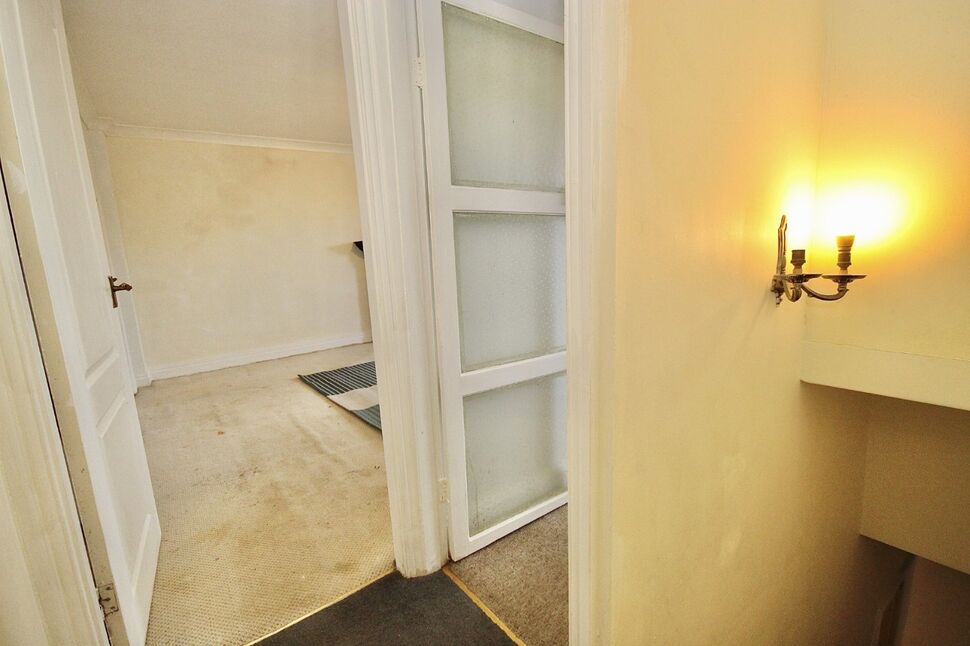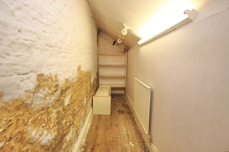 Feature cast iron fireplace, double glazed window, radiator. Doorway opening to a boarded eaves space with lighting plus a radiator.
