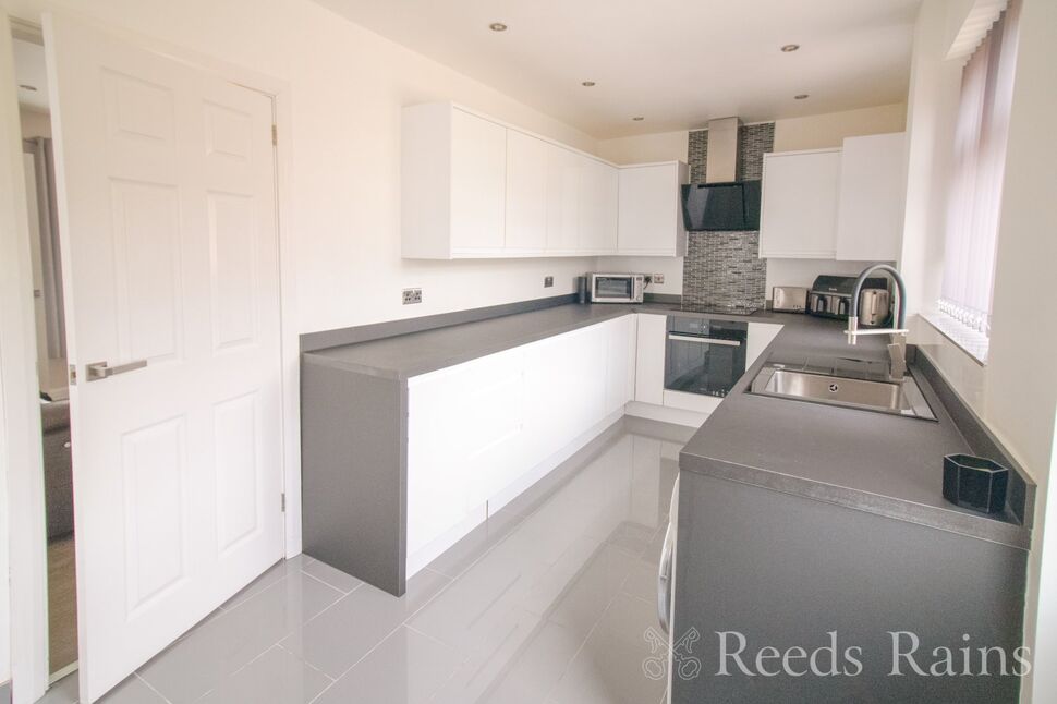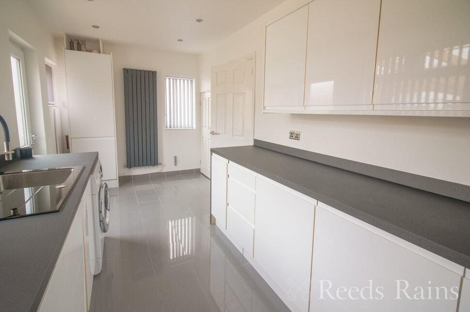 As you step inside, you’re welcomed into a bright entrance that leads into a spacious and inviting lounge—perfect for relaxing after a long day. The heart of the home is the stylish, open-plan kitchen and dining area, featuring sleek units, integrated appliances, and plenty of space for cooking and entertaining. Large window and a rear door flood the space with natural light and provide easy access to the garden.