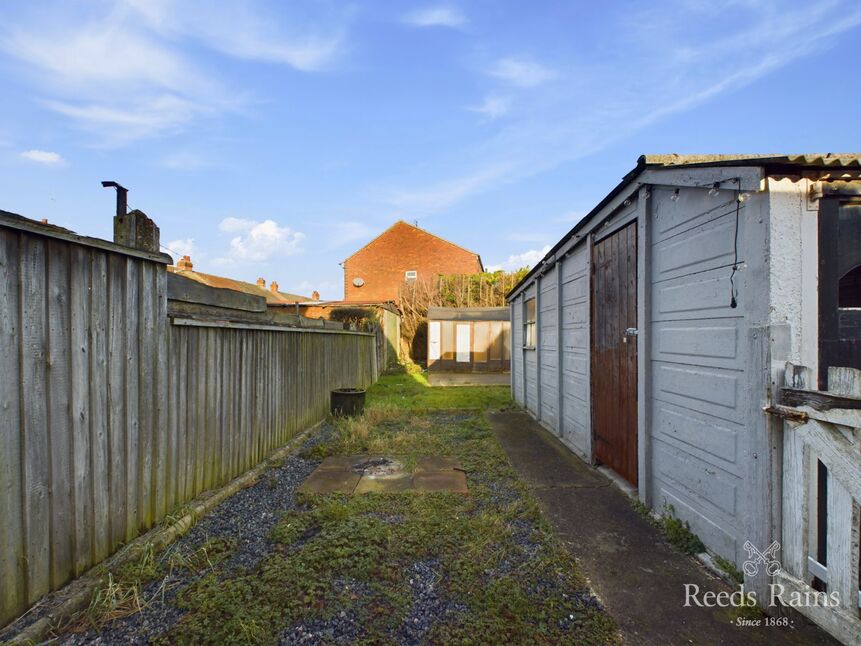 The rear garden is a generous space, ready for personalisation. Currently featuring a lawn, timber decking, and a shed/summerhouse, it offers endless possibilities to create the perfect outdoor retreat.