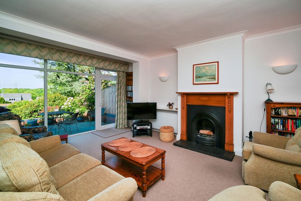 Double glazed picture window and double glazed door to rear, two radiators, coved ceiling, open fire with feature surround, folding double doors to:-