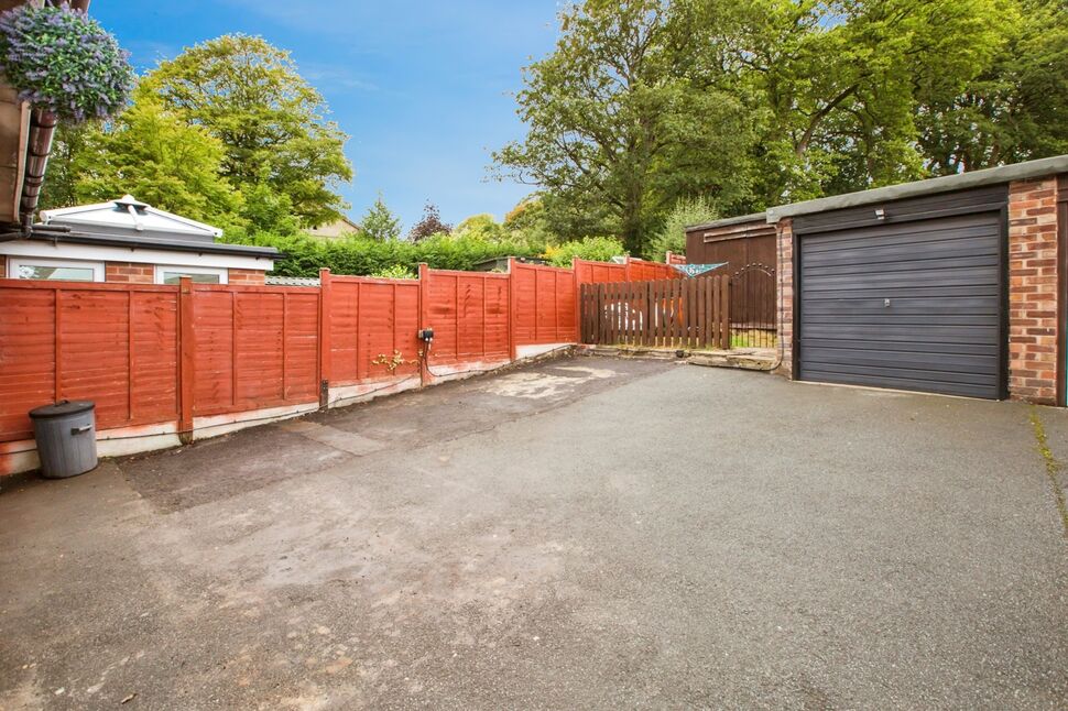 Lawned garden to the front with a pebbled area and a drive leading to the rear of the property. To the rear is an area of hardstanding and a further lawned area with a garden shed. Outside lighting and power.