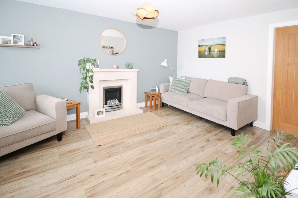 Light and spacious reception room with front facing double glazed window. Living flame pebble effect gas fire with attractive surround and mantelpiece. Radiator. Laminate floor. TV point. Oak door leading to the dining kitchen.