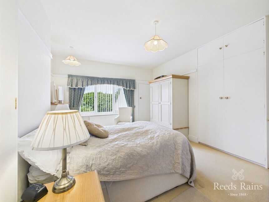 The largest of the four bedrooms, the principal suite is a refined retreat. A wide walk-in bay window frames a lovely outlook to the front while flooding the space with natural light. Generous proportions easily accommodate large bedroom furniture, and a radiator ensures comfort year-round. A private en-suite completes the luxurious experience.