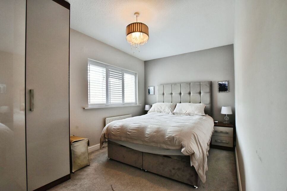 The master bedroom has fitted wardrobes, plantation shutters, radiator.