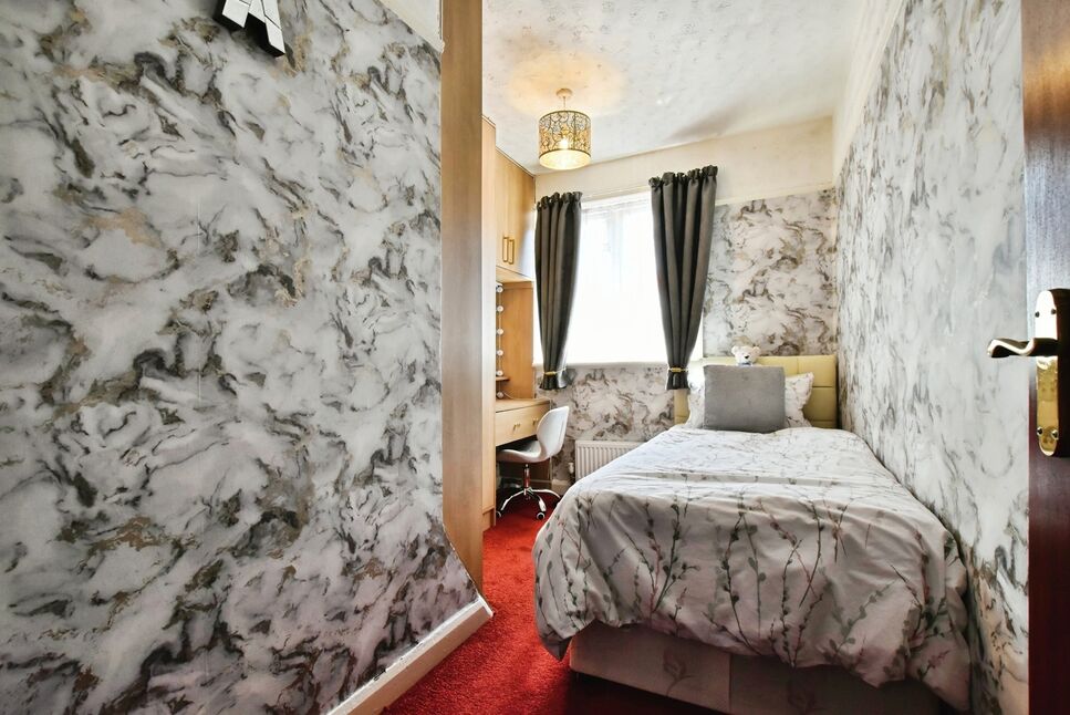 A charming single or guest room with fitted wardrobes, dressing area and front-facing window — ideal for a child’s bedroom or a home office.