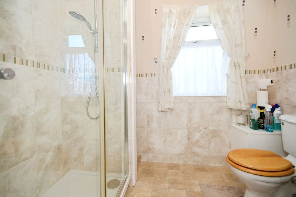 The shower room features a large walk-in chrome and glass shower cubicle with mains powered shower. The space is also fitted with a low level WC and pedestal hand-wash basin. The shower room benefits from partial tiling, radiator, vinyl flooring and frosted double glazed window to the rear.