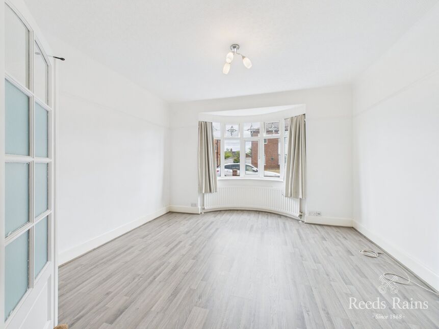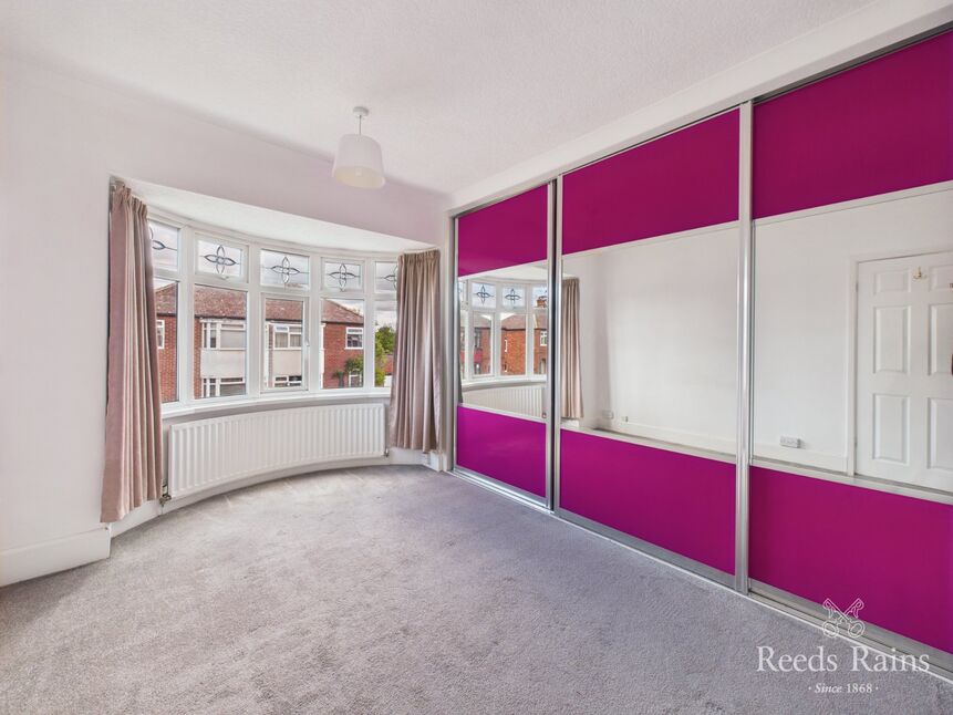 Overlooking the front of the property, Bedroom One is a bright and spacious retreat. A beautiful bay window allows natural light to pour in, creating a warm and inviting atmosphere. The room also benefits from a generous range of built-in wardrobes, offering excellent storage while maintaining a clean and uncluttered feel.