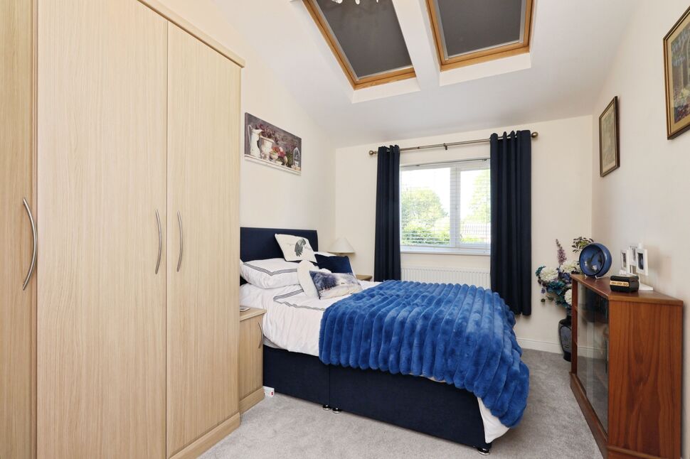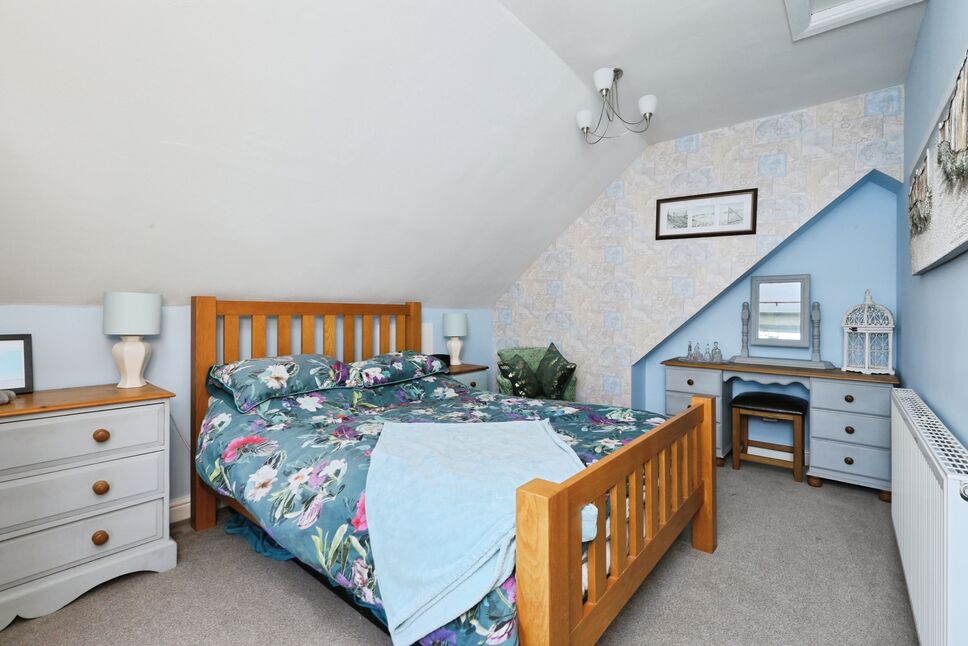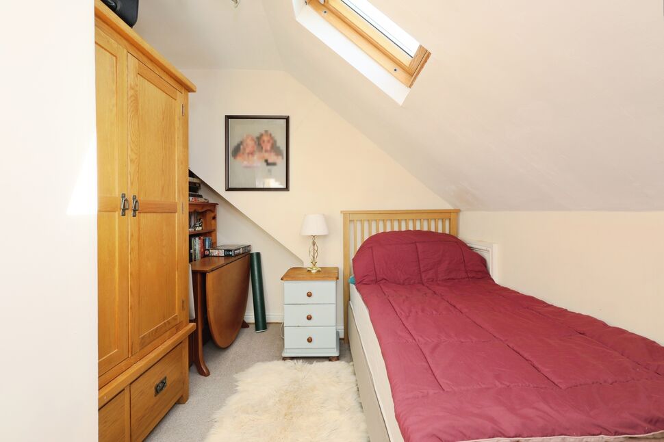 Fitted carpet, central heating radiator, fitted wardrobes and bedside tables, two Velux windows and front facing double glazed window.