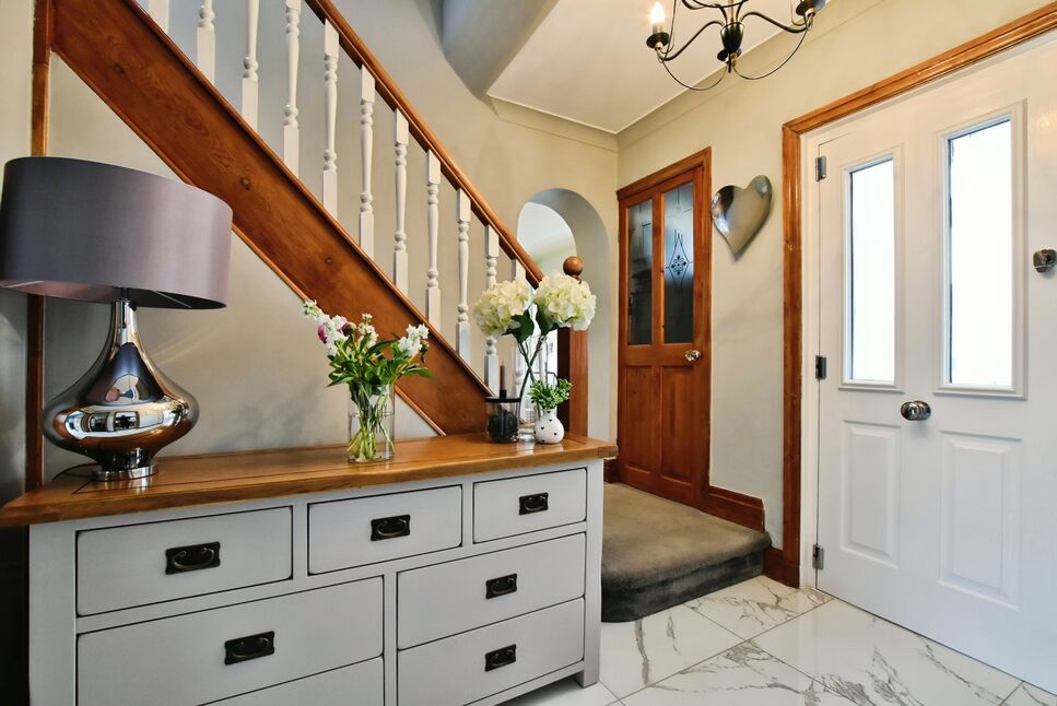 The house boasts two delightful reception rooms, perfect for family gatherings or a quiet evening in. The well-equipped kitchen is the heart of the home and includes a handy utility room leading to a downstairs WC. For those working from home, there is a stylish office just off the entrance hall.