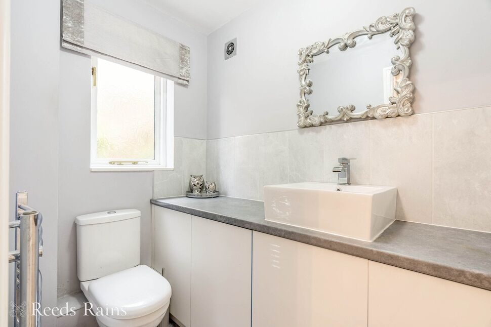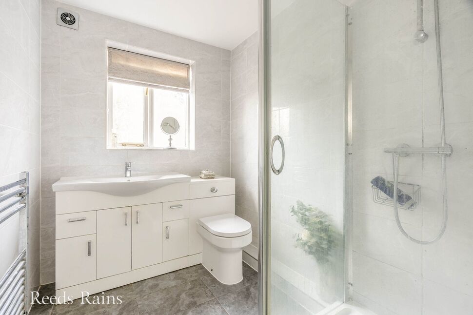 Double glazing to the side, shower cubicle, vanity w.c and sink, heated towel rail, fully tiled walls and floor.