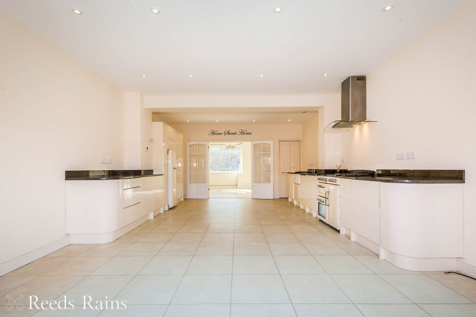 Lovely open plan room with UPVC double glazed bi-folding doors, looking and leading out onto the rear garden. Tiled floor WITH UNDERFLOOR HEATING. Inset down lighting. Fitted with a range of cabinets with quartz work surface incorporating a Belfast sink and providing space for the LEISURE cooking range with filter hood fitted above. Space for SMEG fridge. Integrated BEKO washing machine. Integrated freezer. Door to understairs cupboard with tiled floor and UPVC double glazed windows to the side.