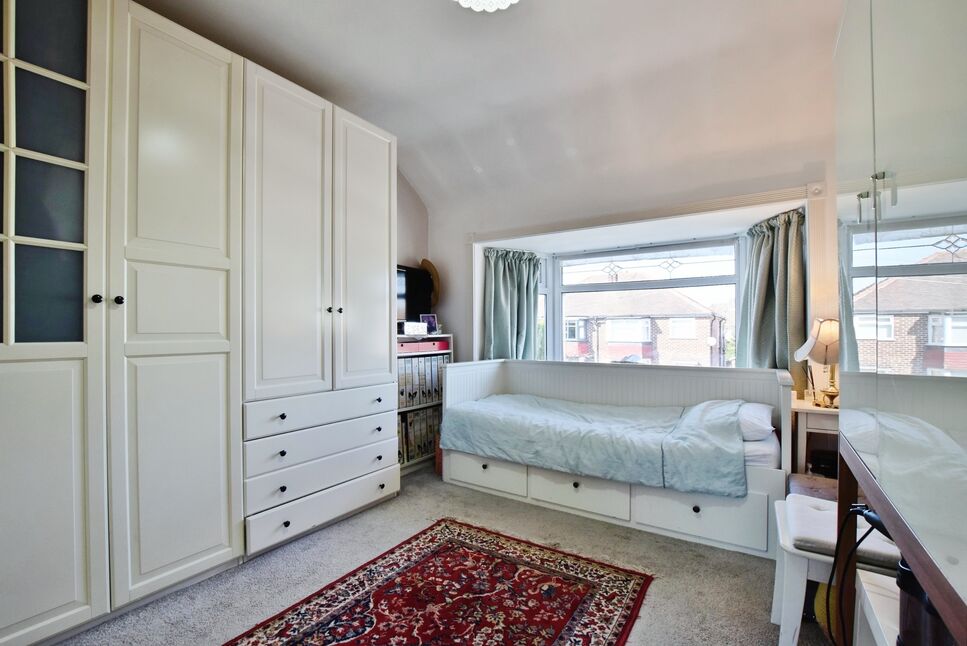 A spacious front bedroom. This inviting room features a charming bay window that fills the space with natural light. Fitted wardrobes provide ample storage, while power points, radiator and thoughtfully placed lighting ensure convenience and warmth.
