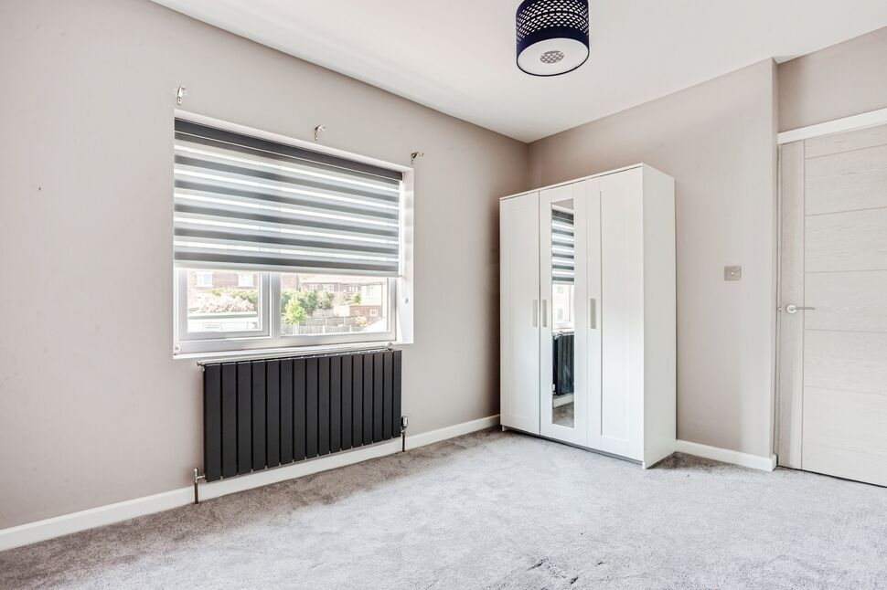 Bedroom with carpeted floor, gas central heating radiator and uPVC double glazed window to the rear elevation.