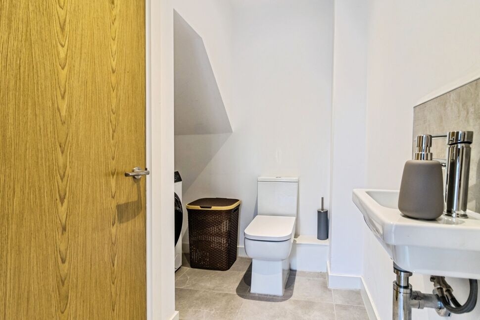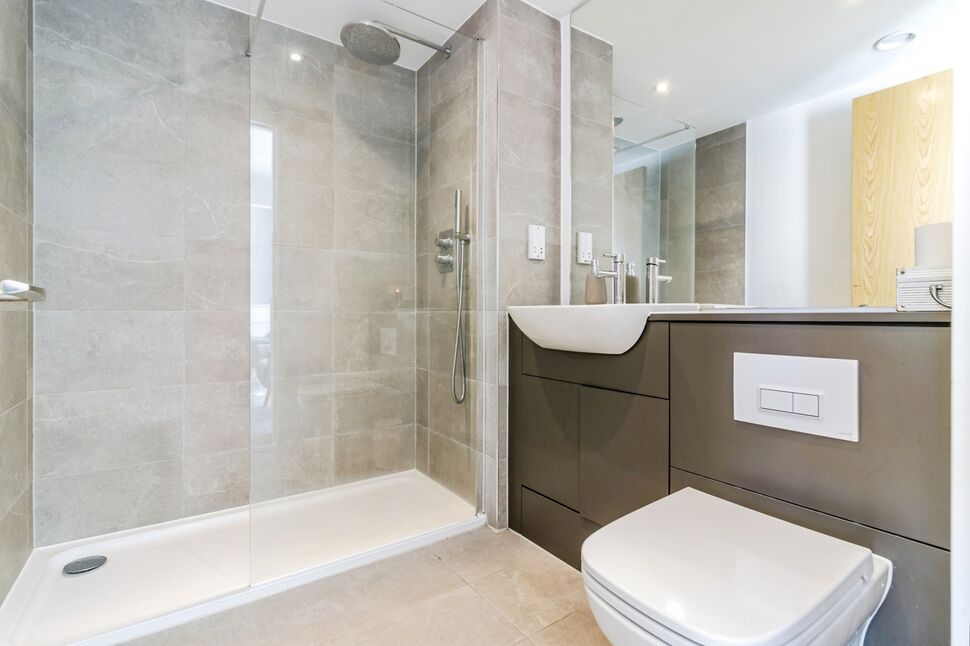 The property offers two modern bathrooms, one of which is an ensuite to the master bedroom. Both are designed with contemporary aesthetics in mind, both featuring heated towel rails, and the ensuite offering a luxurious rain shower.