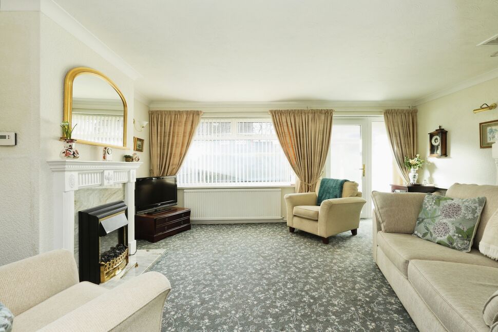 Fitted carpet, central heating radiator and sliding patio door providing access to the conservatory.