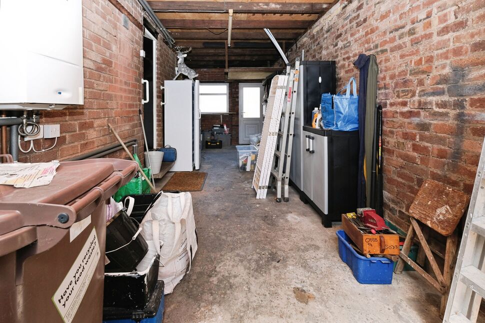 Tiled flooring, UPVC window to rear, access to garage, a range of wall and base units, sink unit, four ring hob, integrated oven, central heated radiator.