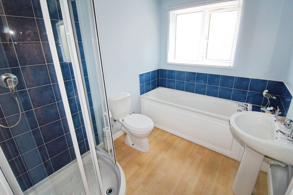 Having a 4-piece white bathroom suite comprising of a panel bath, separate shower cubicle, pedestal wash hand basin and a WC. There is a frosted double glazed window to the rear elevation, a radiator and tiling to splash prone areas.