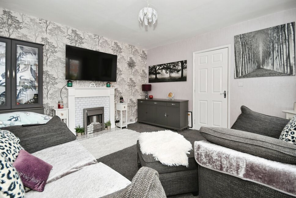 A lovely inviting lounge with an electric fire with surround, TV point, radiator and a double gazed window to the front elevation.