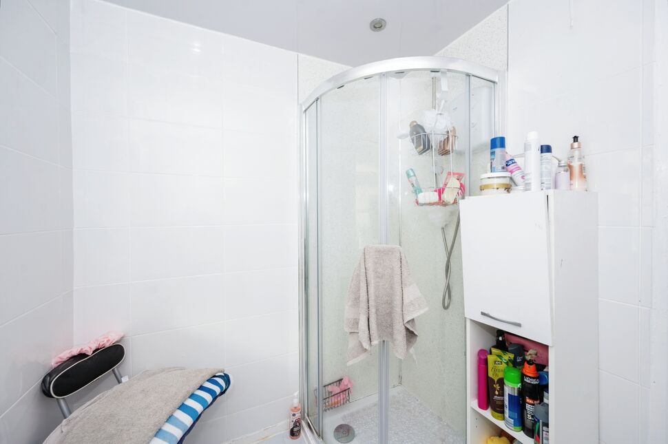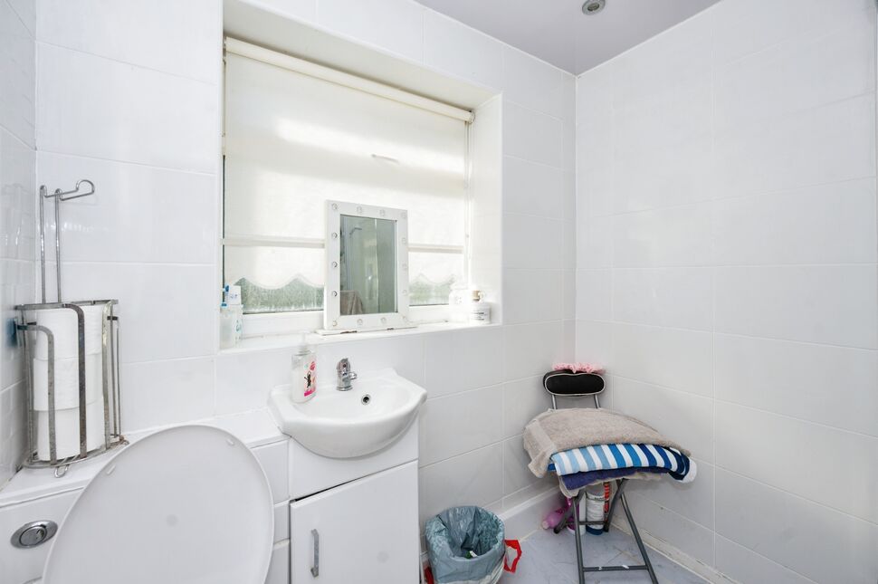 Laminate flooring, shower, low level w.c, vanity wash basin, central heated radiator, frosted UPVC window to rear.