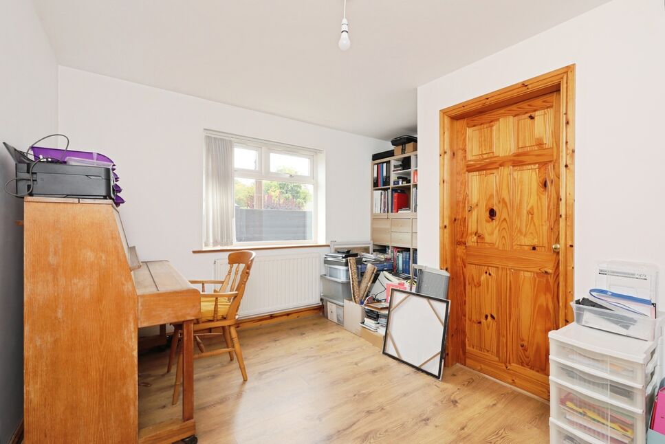 A room providing versatile accommodation with laminate floor covering, central heating radiator and side facing double glazed window.