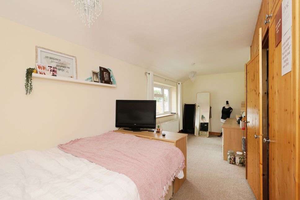Fitted carpet, central heating radiator, fitted wardrobes and rear facing double glazed window.