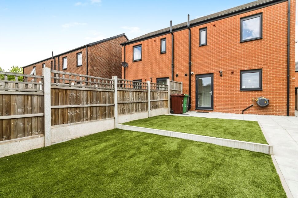 To the front is a driveway providing off-street parking with an electric vehicle charger and adjacent lawned area. Pedestrian gate to the side of the property leading to the good-sized enclosed rear garden enjoying a sunny south-facing elevation. A large patio area extends to the rear boundary where a shed with power and lighting connected is located, with artificial lawn allowing the garden to look immaculate throughout the year and provide low maintenance. There is an outside water tap.