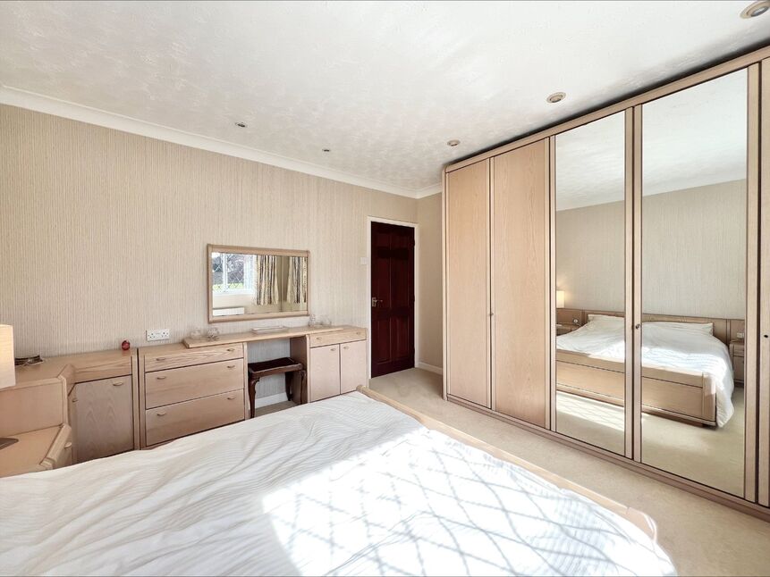 (Ground floor)A good size double bedroom with a range of wall to wall quality fitted wardrobes with matching dressers and bedside cabinets.