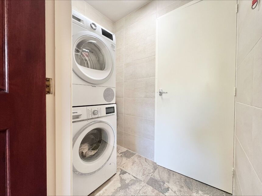 A useful utility space with plumbing for automatic washing machine and tumble dryer.