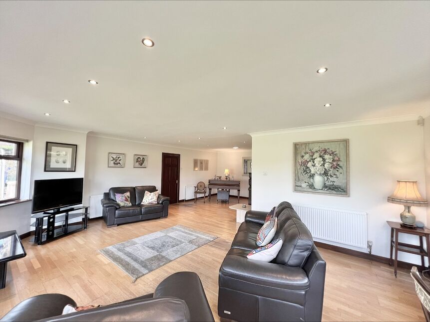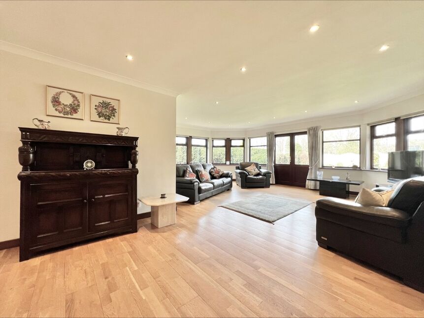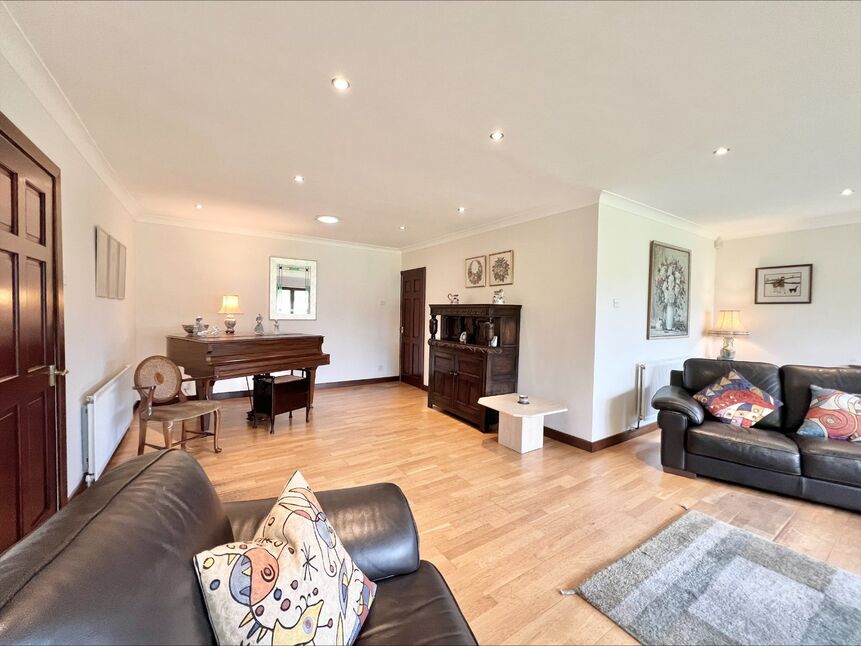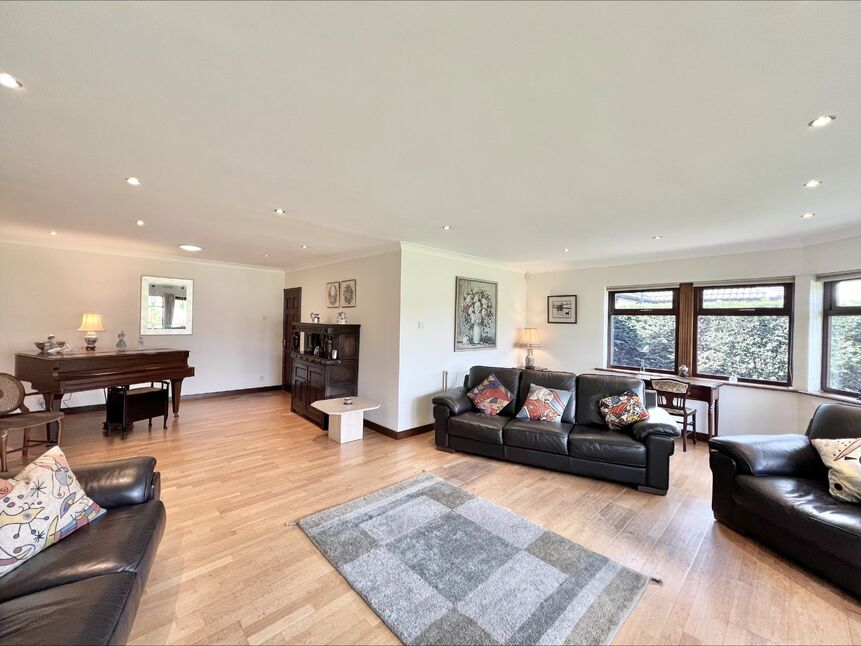 - Very spacious open plan family lounge/sitting room with adjoining music room offering fabulous views of the rear gardens and countryside beyond.