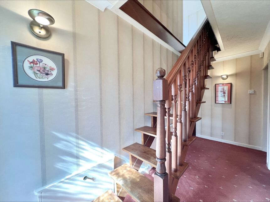 - Entrance hallway with staircase leading to the first floor bedrooms three and four.