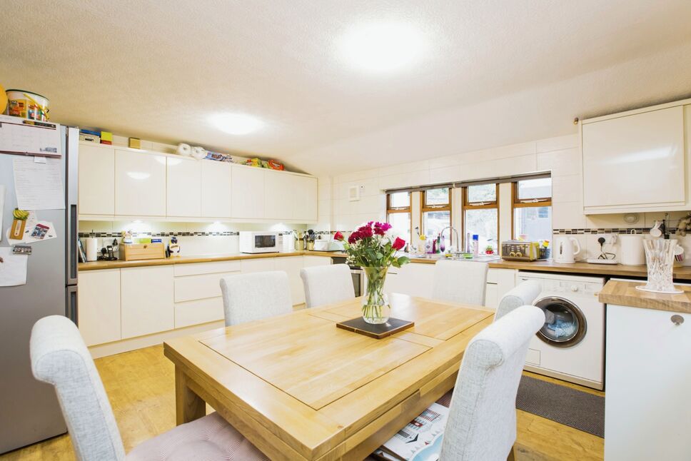 Again a fantastic family living space with ample dining area and plenty of of under and over counter units and pan drawers. There is more than enough worktop prep space as well as stainless stell one and half sink unit, fitted electric oven and gas hob. Dual aspect windows to the side and rear along with rear door to garden and parking area.