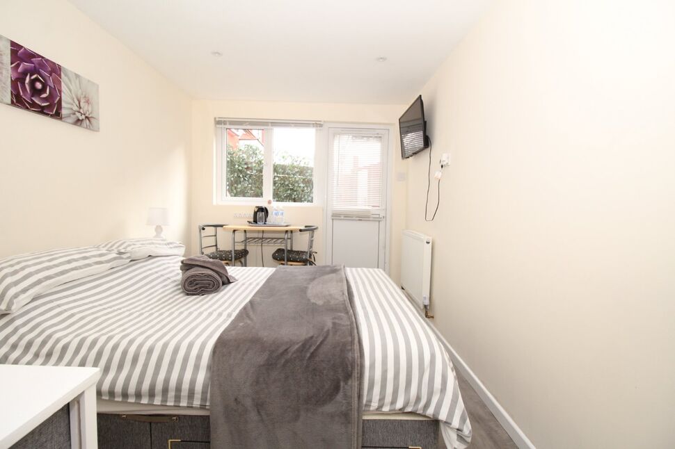 A nice sized single bedroom with radiator, power points and uPVC double glazed window to the front and opening into: