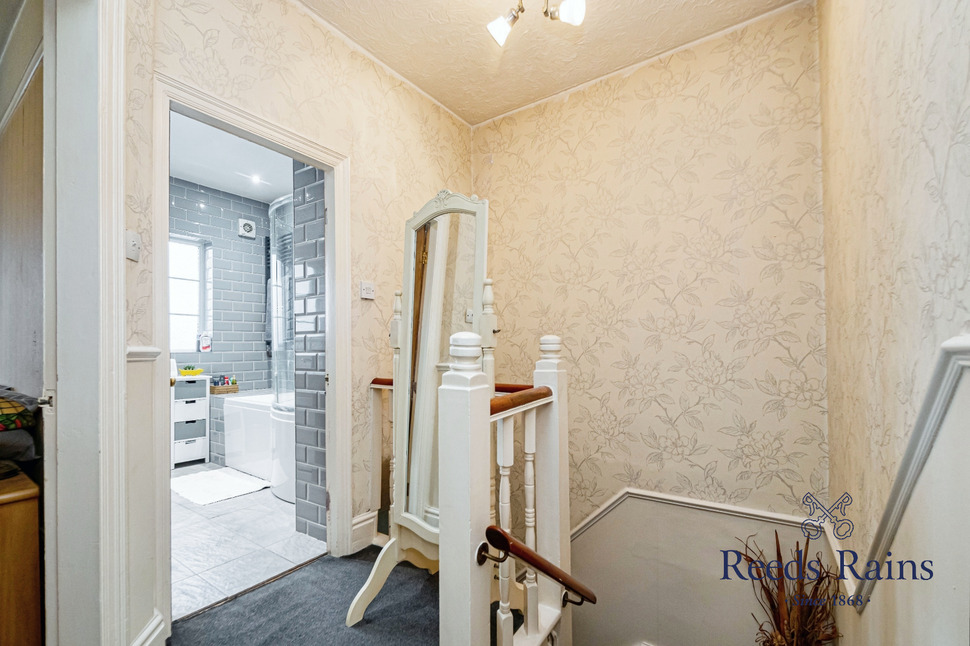 Upstairs, the central landing provides access to three well-proportioned bedrooms, all brimming with natural light, and a recently refurbished bathroom finished to an exceptional standard.