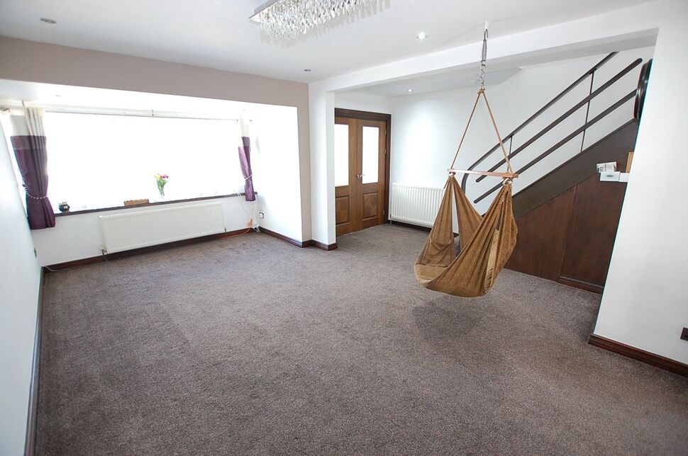UPVC double glazed window to front aspect, two radiators, stairs to first floor, understairs storage cupboard, double doors to dining kitchen.