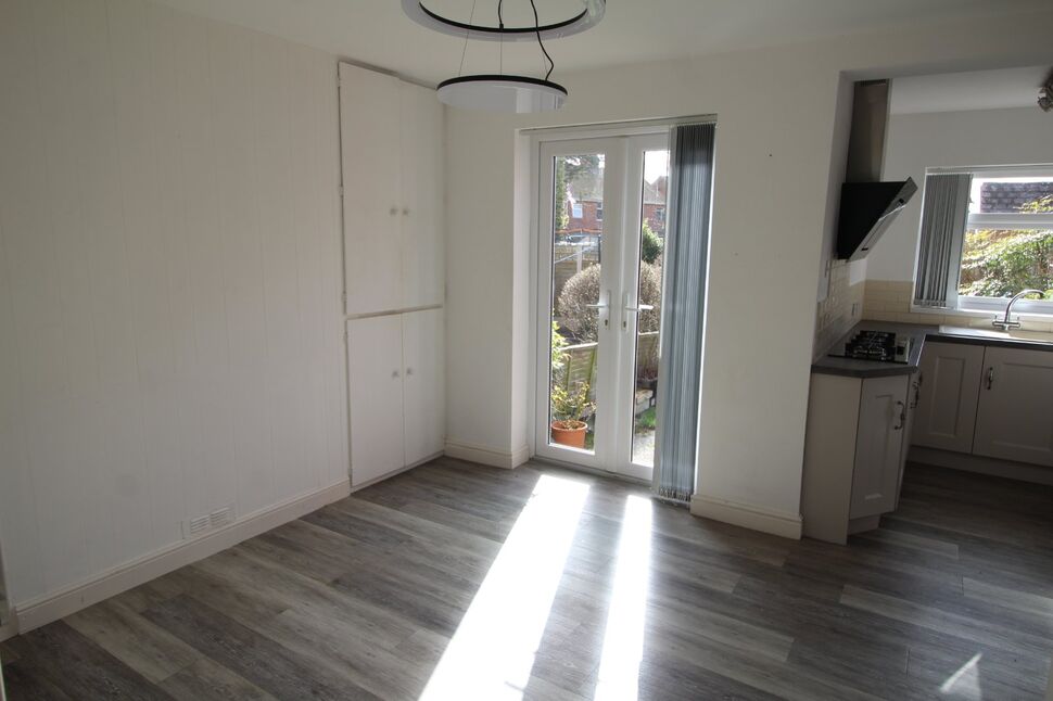 Step inside to find a bright and welcoming lounge, ideal for relaxation. The heart of the home is the open-plan dining kitchen, featuring a modern fitted kitchen with an integrated fridge, a high-quality Neff oven, and plumbing for a washing machine. The dining area flows seamlessly through patio doors onto a small patio, leading to the garden—perfect for outdoor dining and entertaining.