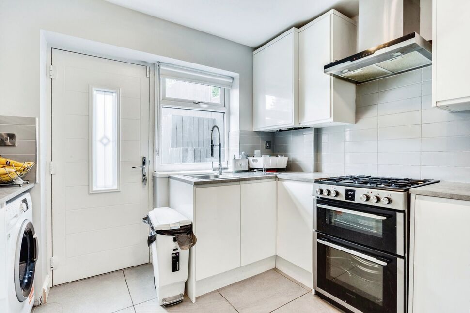 Fitted kitchen comprising of wall and base units with stainless steel sink/drainer and laminate worktops. There is space and plumbing for kitchen appliances, tiled floor, uPVC double glazed window and composite rear entrance door.